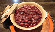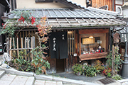 二寧坂の坂道を散歩していたら、ふっと見つけた甘味処「かさぎ屋」に入ってみた。明治時代の建物で、なかに入ってみるとタイムスリップしたようだ。店の名物は、「京都ぜんざい-田舎しるこ-」(650円)=写真左=。ちっとも甘ったるくなくて透き通るような甘さだ。炭火で焼いた餅の焦げと小倉の甘みが、口のなかでよく馴染む。餅の上に小倉をふんだんに乗せた「亀山」(800円)=Menu上=は、箸で小倉をすくってもすくっても餅が見えてこないほど。三色おはぎ(650円)=Menu中央=などと合わせて常連客の人気メニューだ。