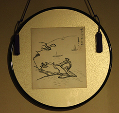 店は大正3年に創業し、現在の店主は4代目で、もうじき102年目を迎える。もとは、清水寺の参拝客のために店を建てた。かつて隣には、美人画として一世を風靡した竹久夢二が住んでおり、好物のお汁粉を食べに、かさぎ屋へ通っていたそうだ。店に入ってすぐ左手の壁には、夢二が描いた水墨画=写真下=も飾られている。