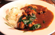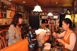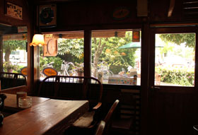 今まで、ジャズというと陽の当らない地下の部屋などで聞いて、ボンボンと鳴り響く暗いイメージを持っていた。でもこの店で聞くジャズは陽気だ。マッキントッシュの真空管アンプ、樹木に書かれたメニュー、カウンターに出没する招き猫、窓から注がれる優しげな日射し、べっぴんさんな奥さんの笑顔……。そんな演出が重なって、思わず音と一緒にリズムをとってしまう。