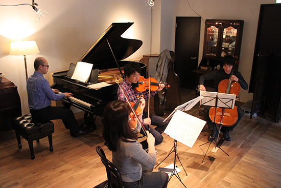 珈琲のほかにも、ビールやグラスワインもあり、濃厚な味のケーキ〝タルト・フロマージュ〟は人気商品だ。そして、ここではお茶を楽しみながら、リハーサルを聴くこともできる。普段着の演奏者たちによる、さざなみのようなピアノのタッチ、勢いよく楽譜をめくる音、気持ち良さそうに弦を弾く表情。そんな打ち合わせの風景を見ていると、音楽がより身近に感じられる。常連客の女性は「重厚で贅沢な空間ですね。ほかにあんまりないこの空間が好きで、週に1、2回来ています。リハーサルに、たまたま遭遇するのも、楽しみの一つです」と話した。