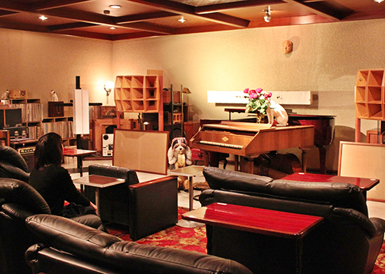 約50席ほどの店内には、1台150万円ほどする木製のスピーカーが2台置かれ、全ての椅子が、そのスピーカーの方へ向いている音楽会形式のレイアウト。イタリアの室内楽団「イ・ムジチ」が初来日した際に、イギリスから運ばれたというチェンバロも置かれている。