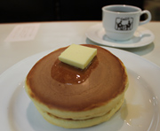 おすすめは、ホットケーキ(550円)。食べてみると、素朴で、あっさりとした味わい。季節により、粉の配合など練り合わせ方を変え、いつ食べても同じ味になるように工夫しているという。隣の席に座っている女性は、ホットケーキの上にある手作りバターを、フォークでクルクルと回しながら溶かしていた。
