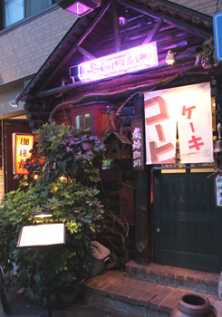 地下鉄扇町駅から西へ歩いて10分ほどのところに、森のなかの小さな山小屋風の建物がひっそりと建っている。「エミール・パコ」というネオンに誘われるように中に入ると、薄暗いなかで灯るランプが温かい。