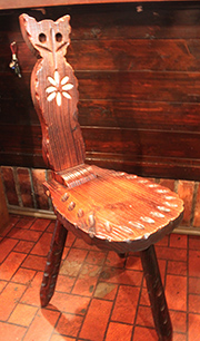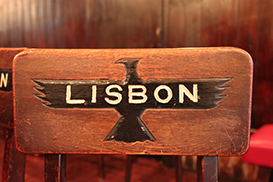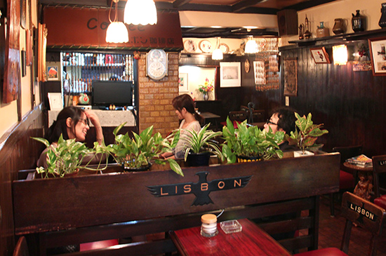 オーナーの西口知子さんは、「店の特徴 はこの雰囲気」とゆっくり話す。レトロなだけでなく、どこか家庭的で柔らかい匂いがする店内は、西口さんの可愛らしいエプロン姿と大阪弁のせいかもしれない。当時からある「LISBON」と彫られた椅子は、現代人にしては低め。店を改装するときに、新しく作った椅子もあり、そのため、背もたれに